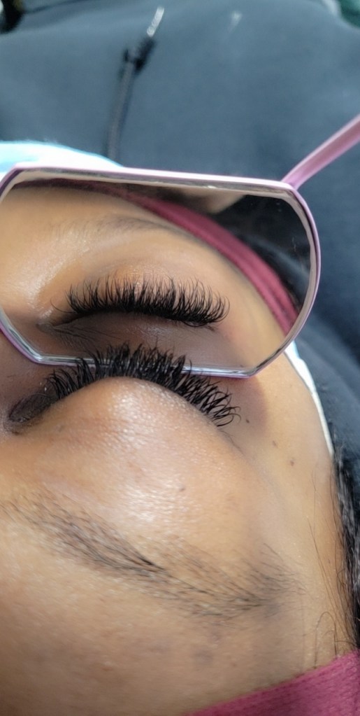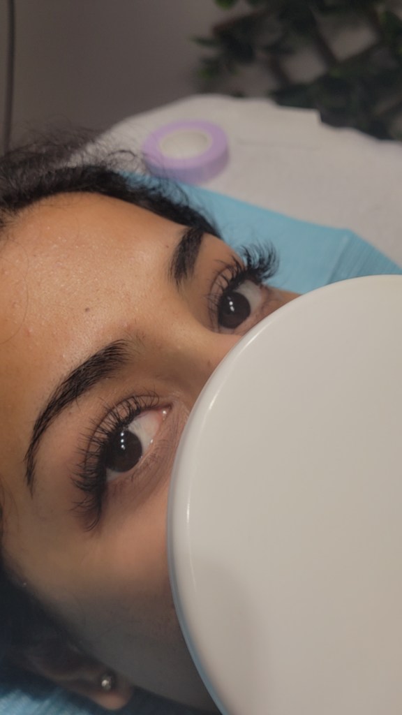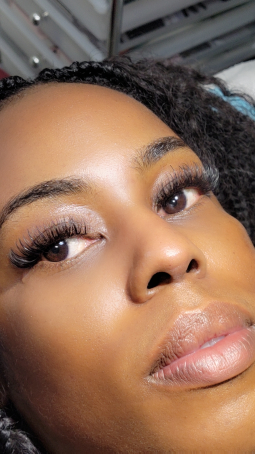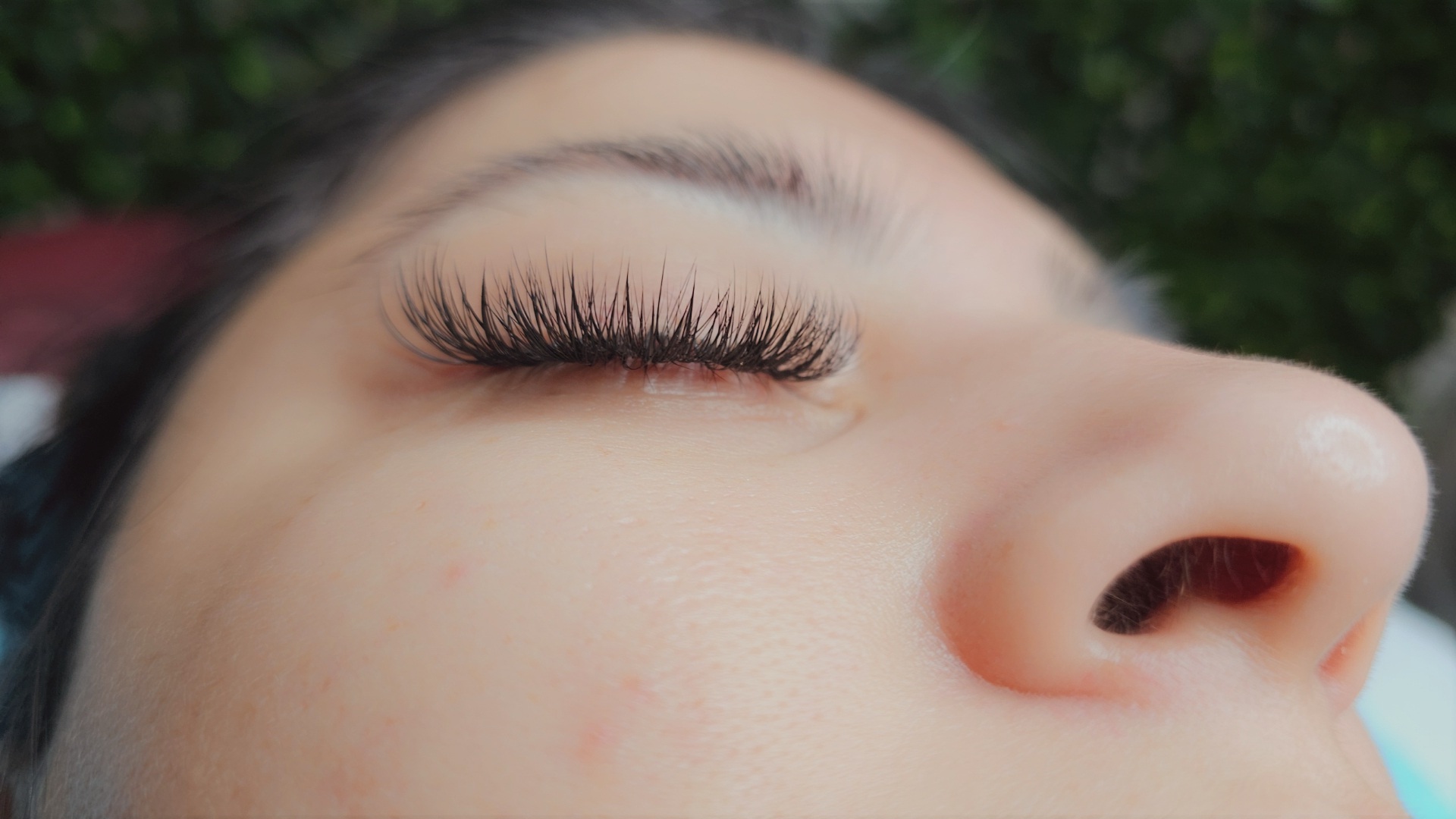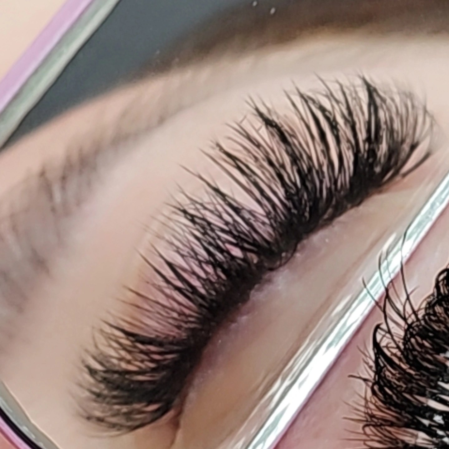 Volume eyelash extensions are where two or more individual extensions are attached to each natural lash. They are first formed into fans, which is where the desired number of lashes are fanned out and as a “bouquet”, applied onto one natural lash with adhesive.