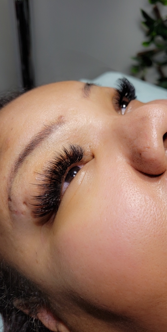 Mega volume eyelash extensions are fans of extremely thin lashes that are applied to the natural lashes for a super full but lightweight styling. Mega volume lashes are a great option for those looking for extra drama or are regular makeup wearers.