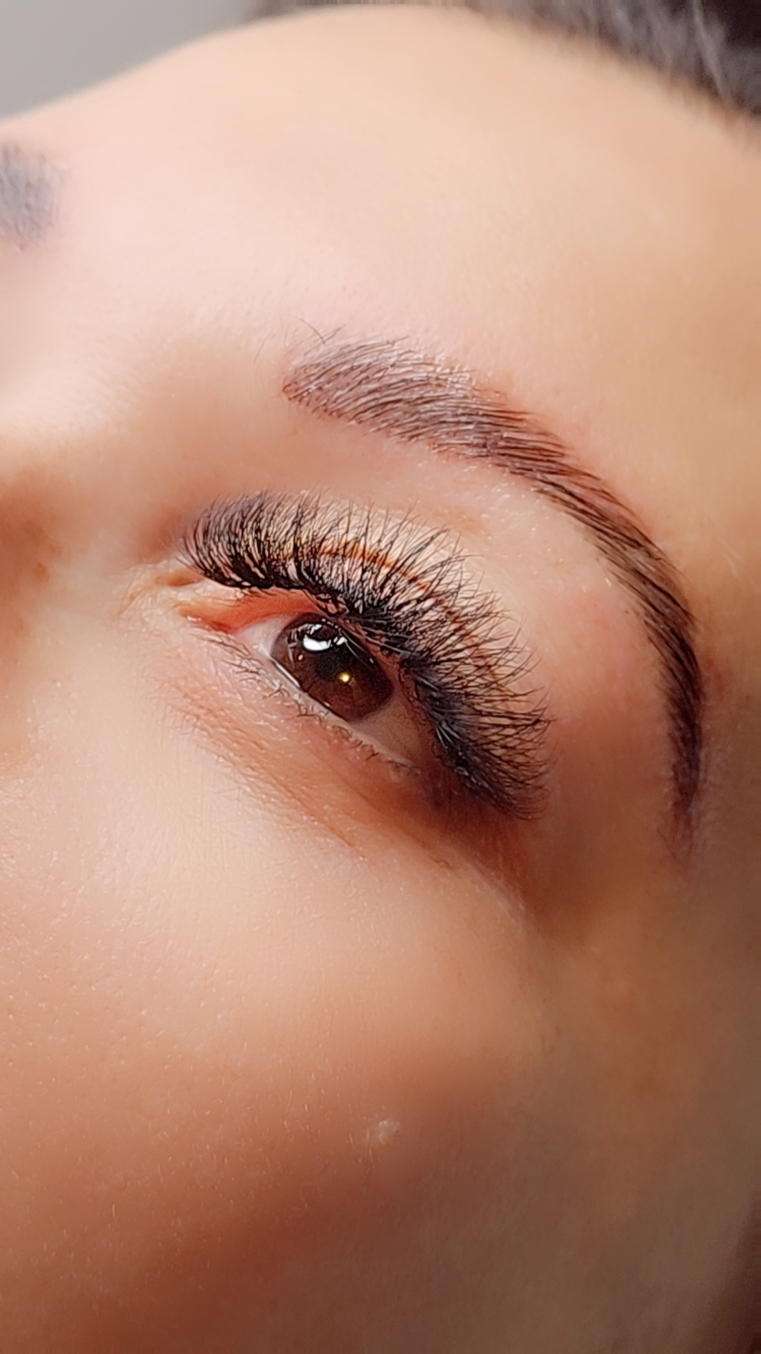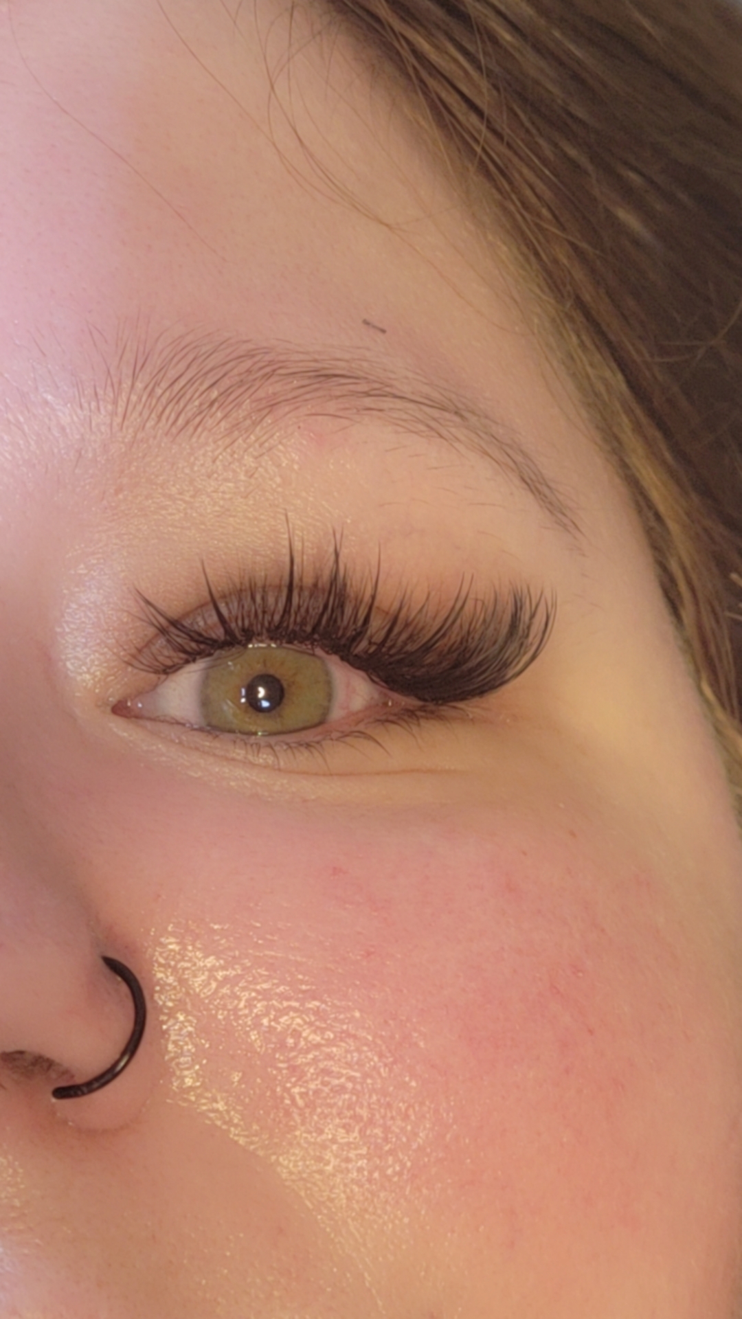 Combination of two techniques: Volume and Individual lash extensions. Taking the best bits from both treatments, Hybrid Lashes will give you volume and length, resulting in a wispy, textured lash extension look.