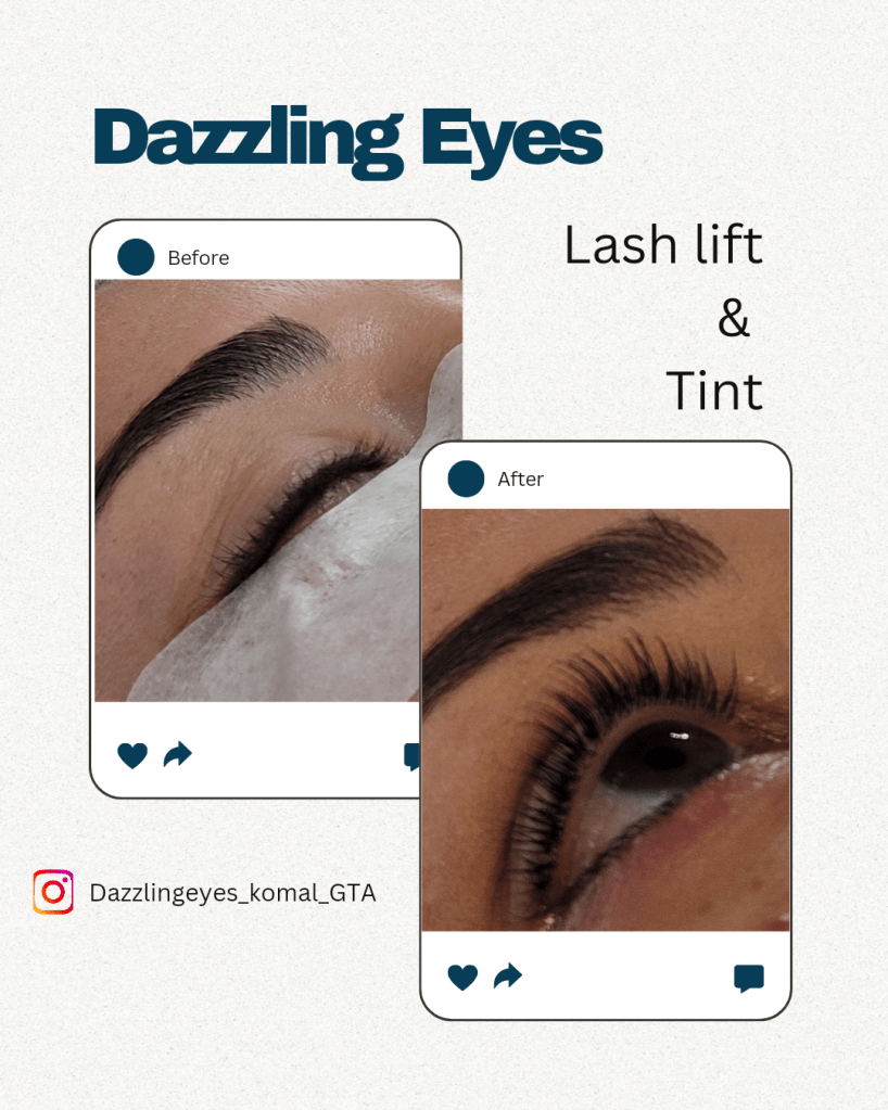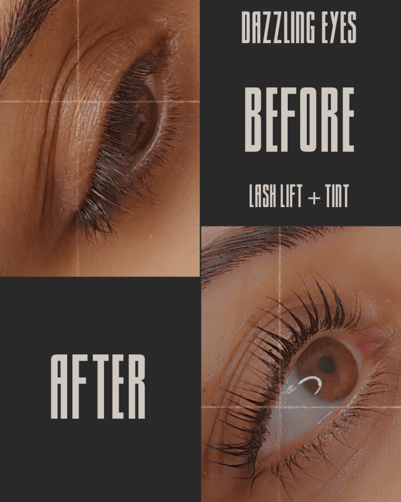 Lash Lift + Tint Lash lift and tint is a beauty treatment that enhances the appearance of your natural eyelashes by curling them and adding color. Price: $90
