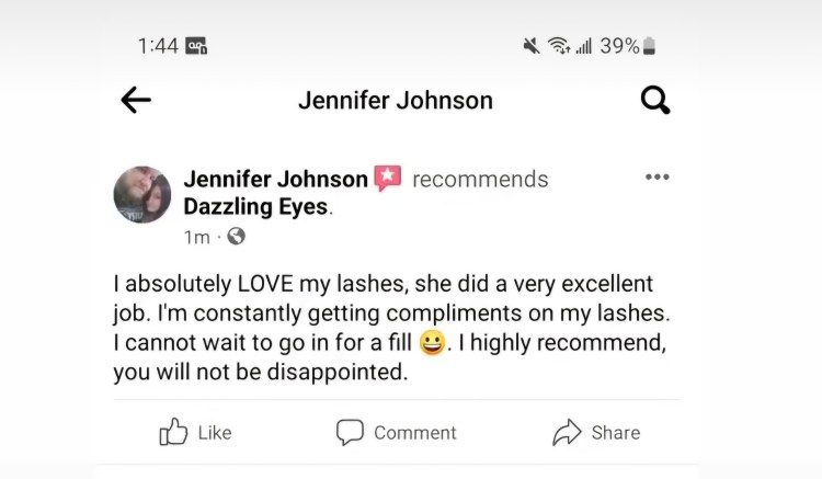 At Dazzling Eyes, we specialize in crafting gorgeous, long-lasting eyelashes that empower our clients to look and feel their best. With years of experience and a passion for beauty, we aim to provide a relaxing, luxurious experience for every customer.