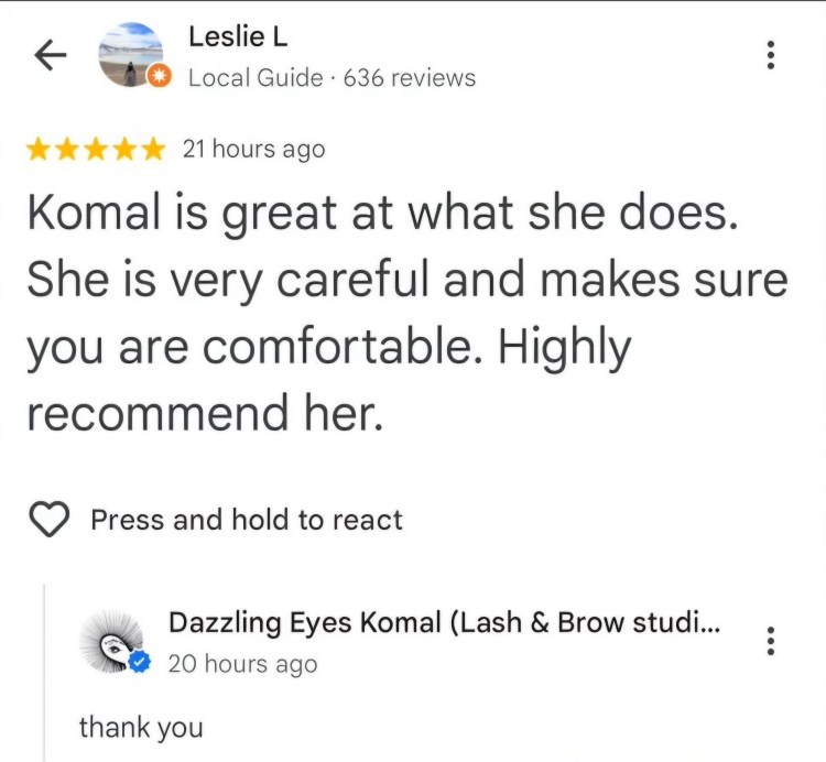 Founded in 2020 by Komal, Dazzling Eyes, is a renowned lash & brow studio based in Vaughan, ON.